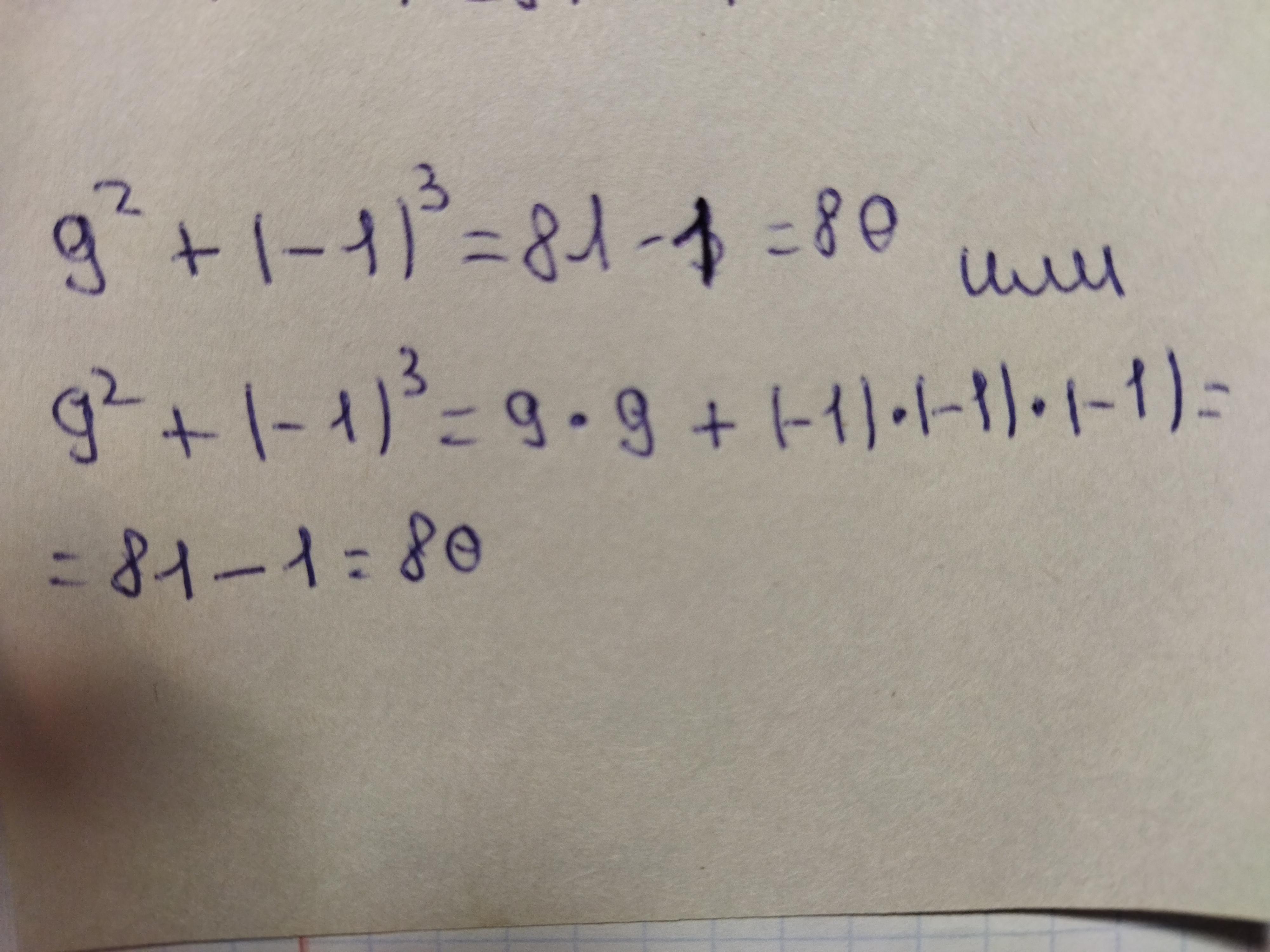 -1 в 3 степени будет -1, именно поэтому 81 - 1=80