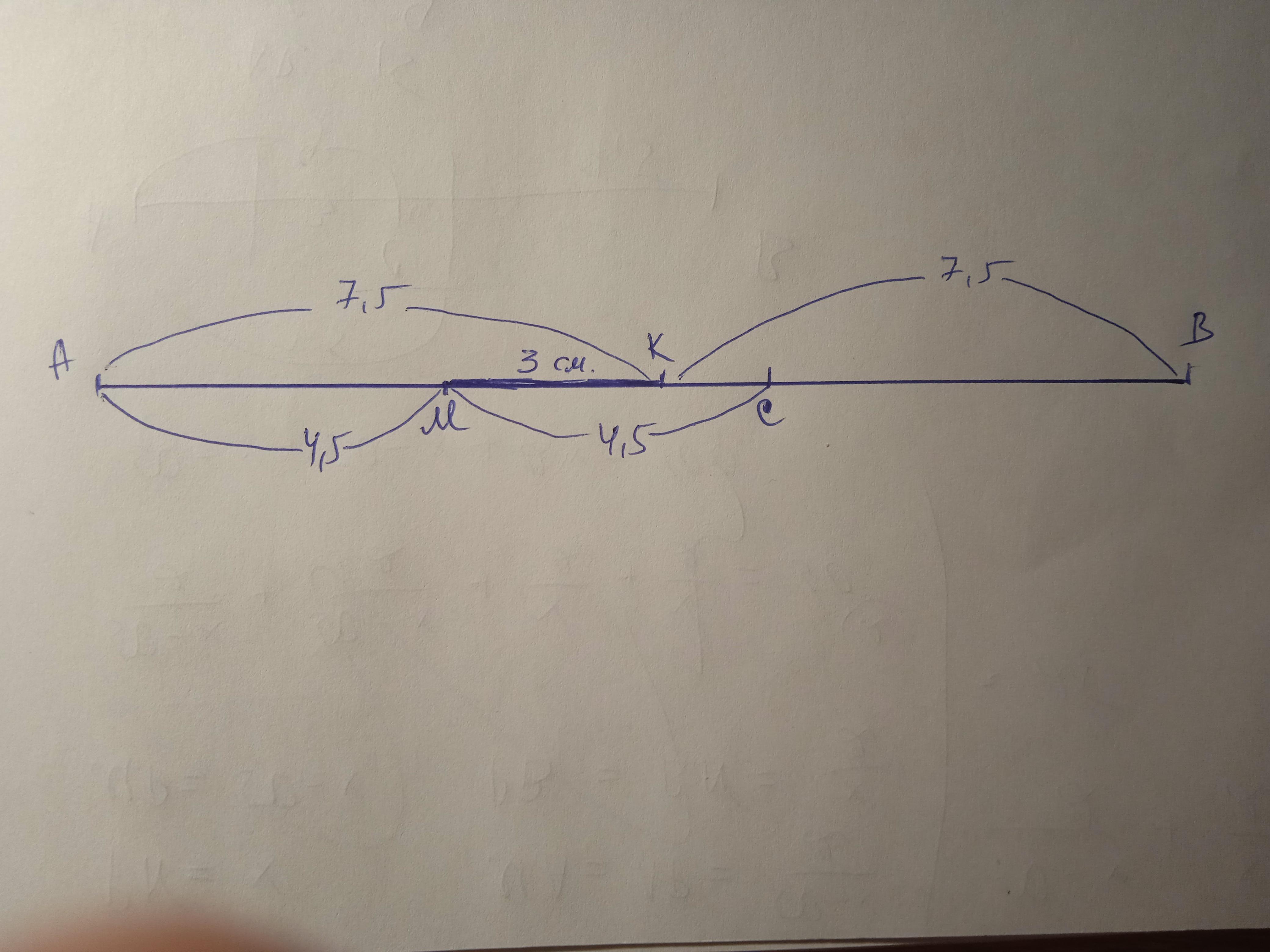 Точка C - внутрішня точка відрізка АВ. Знайдіть відстань між серединами відрізків АВ і АС якщо АВ=15см АС=9 см