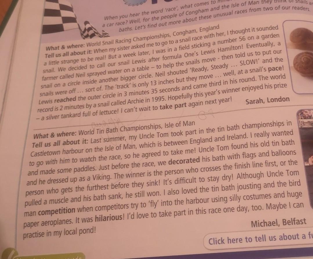 В тексте был момент с именем улитки, по этому по тексту можно задать вопрос "Who was the snail named after?" (спрашивает в честь кого назвали улитку)