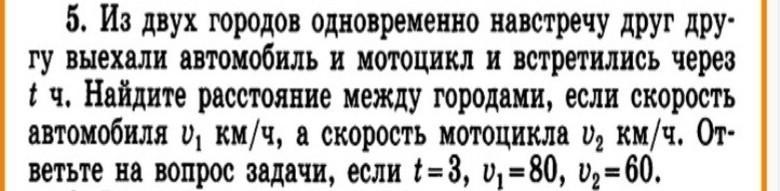 3. Вычислим сколько километров между городами из которых на встречу друг другу выехали автомобиль и мотоциклист.
