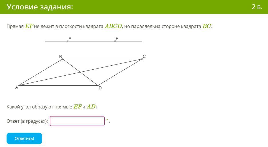 Прямая EF не лежит в плоскости квадрата ABCD, но параллельна стороне квадрата BC.