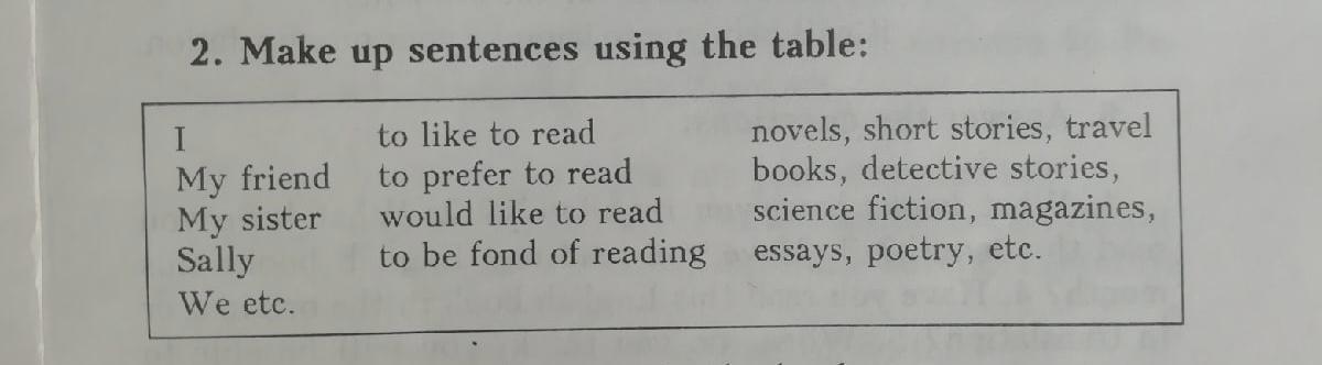 4. We, Sally and etc. are found of reading some poetry, essay and etc.