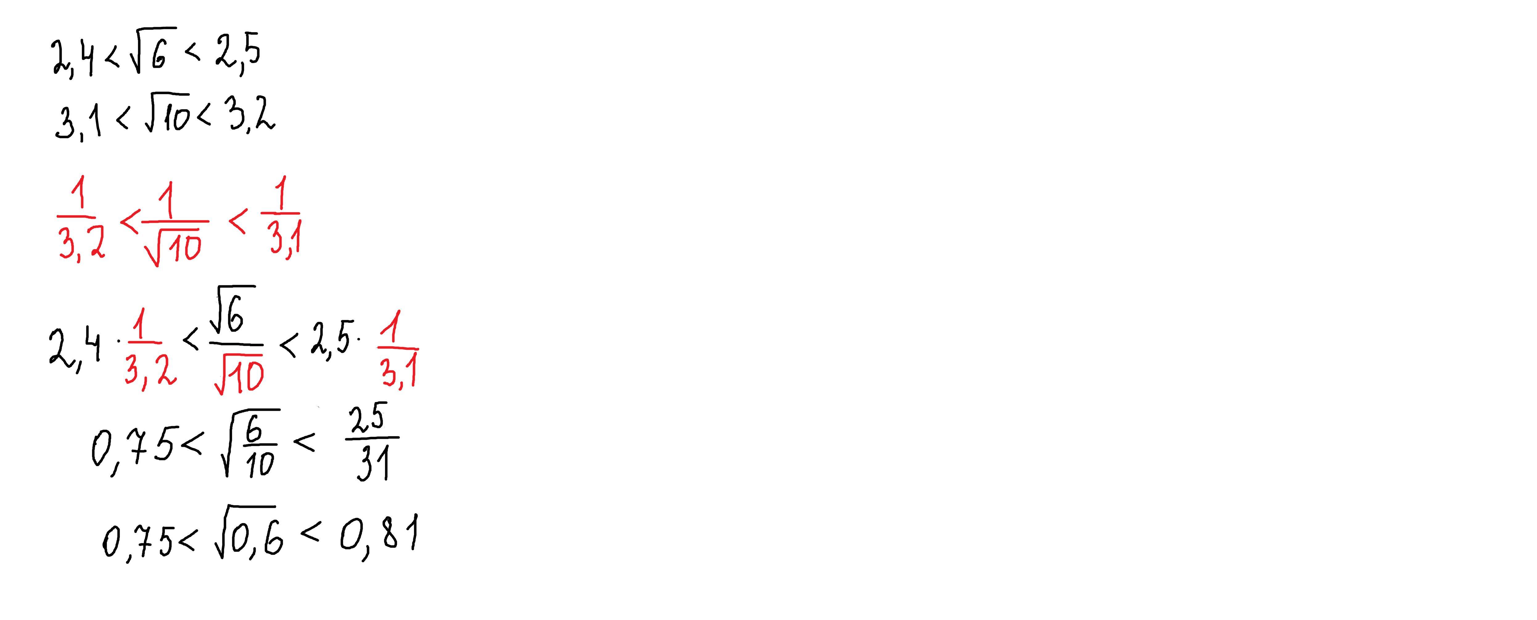 0,75 < √0,6 < 0,81(приближенное значение 25\31)