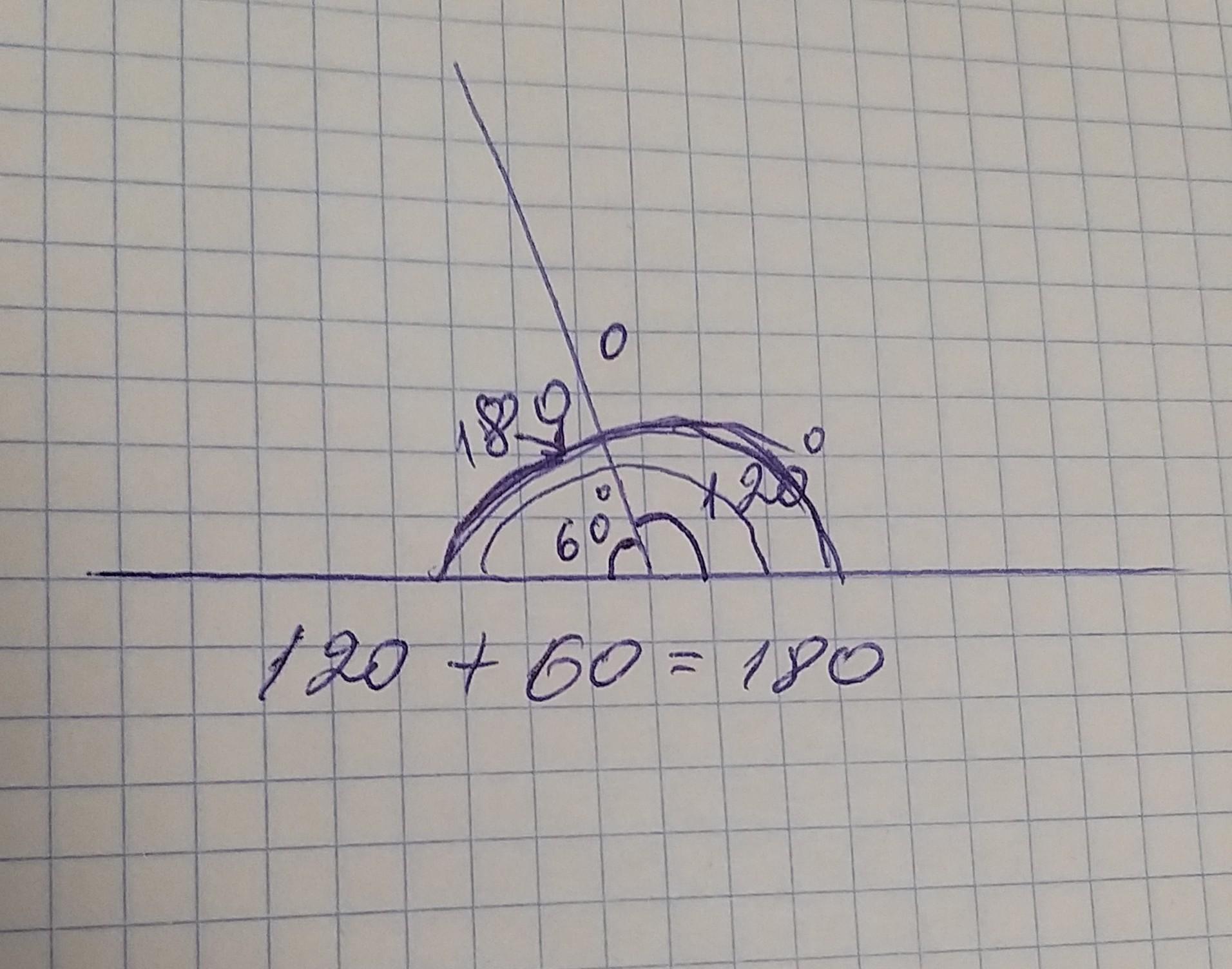 9. Постройте углы 60° и 120°, обладающие общей стороной. Какой получился