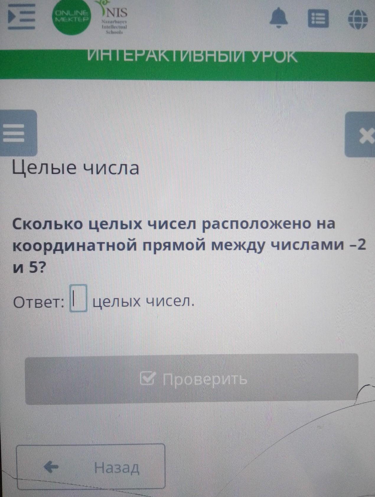 Помогитееее Сколько целых чисел расположено на координатной прямой между числами -2 и 5?