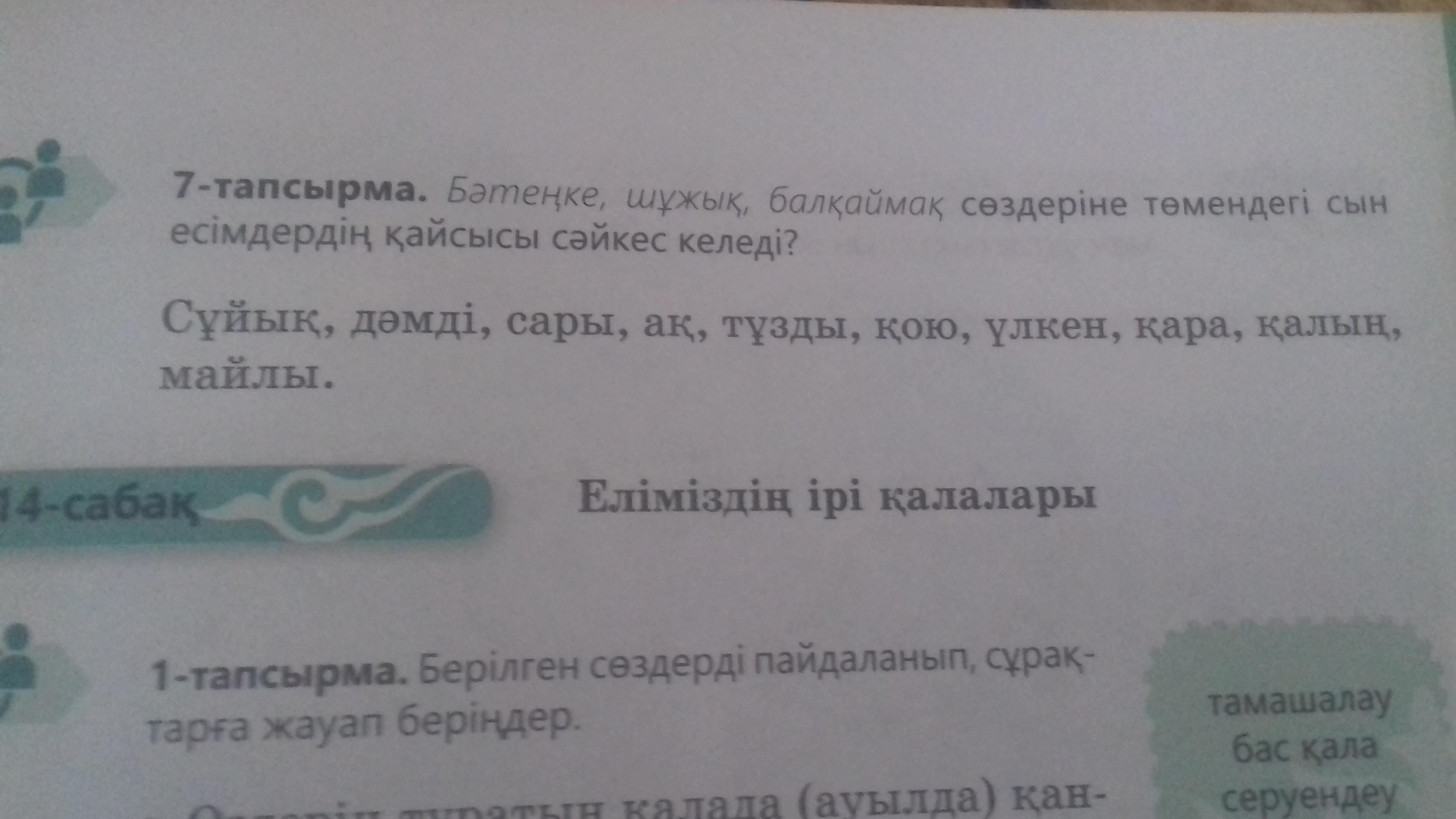 7-тапсырма.Бəтеңке,шұжық,балқаймақ сөздеріне төменлегі сын есімдердің қайсысы сəйкес келеді?