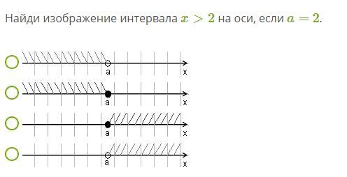 Найди изображение интервала x>2 на оси, если a= 2