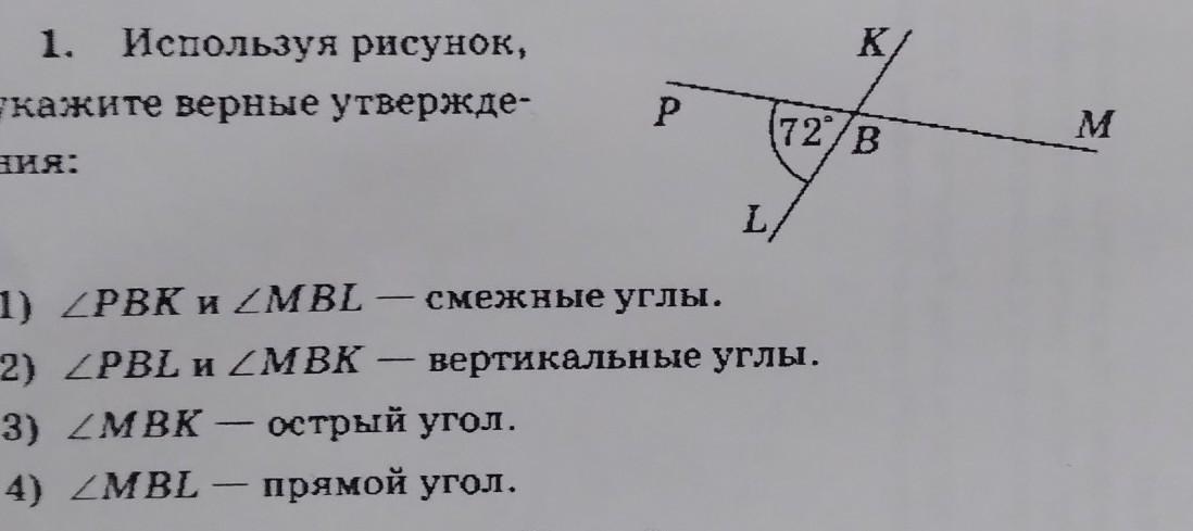 1) ∠PBK и ∠MBL — смежные углы.