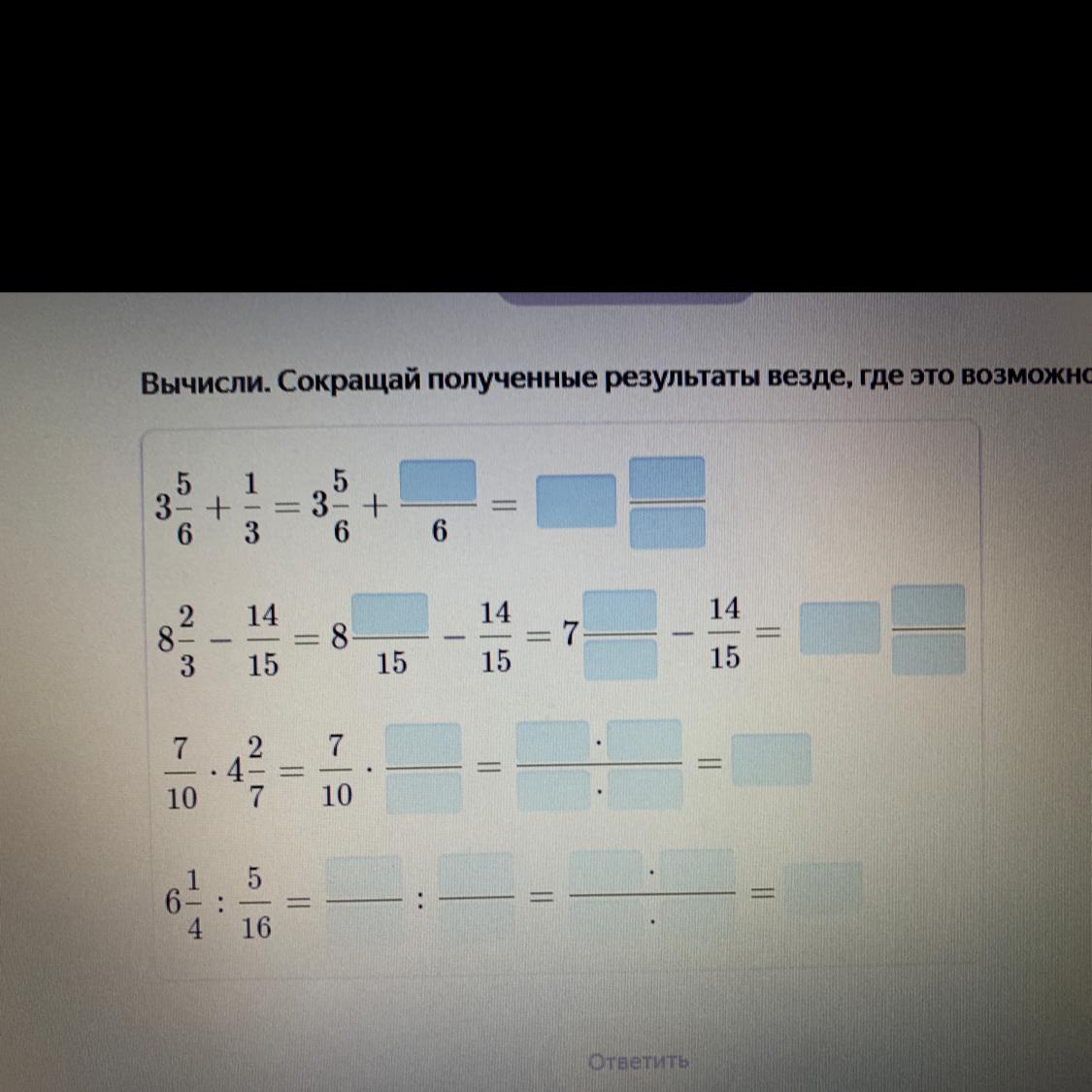 Ответ:1)4 1/6;2)7 9/15;3) 3;4)20