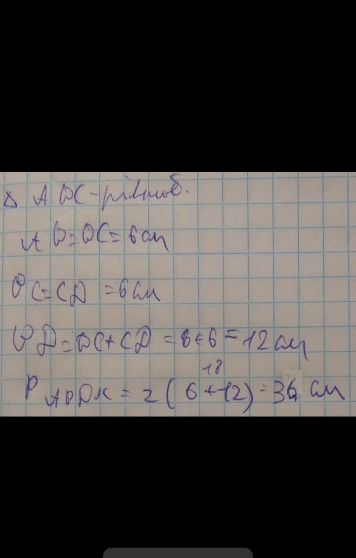 бісектриса одного з кутів прямокутника ділить його сторону пополам. знайдіть периметр прямокутника якщо його сторона дорівнює 6 см