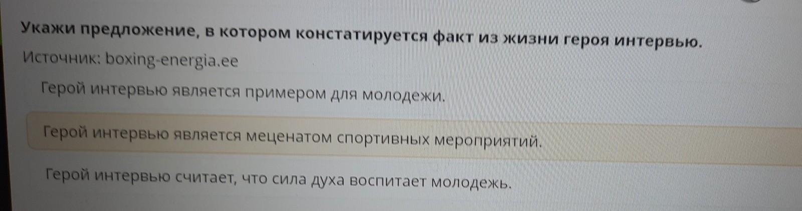 Укажи предложение, в котором констатируется факт из жизни героя интервью. Источник: boxing-energia.ee