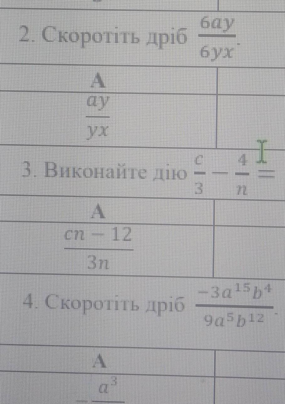 4. (-a¹⁵b⁴)/(3a⁵b¹²) = (-a¹⁵⁻⁵b⁴)/(3b¹²) = (-a¹⁰)/(3b¹²-b⁴) = (-a¹⁰)/(3b⁸)