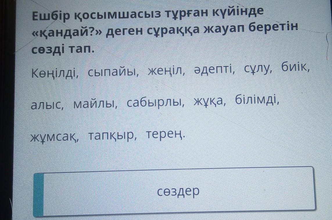 Ответ:сыпайы жеңіл сұлу биік алыс жұқа жұмсақ терең