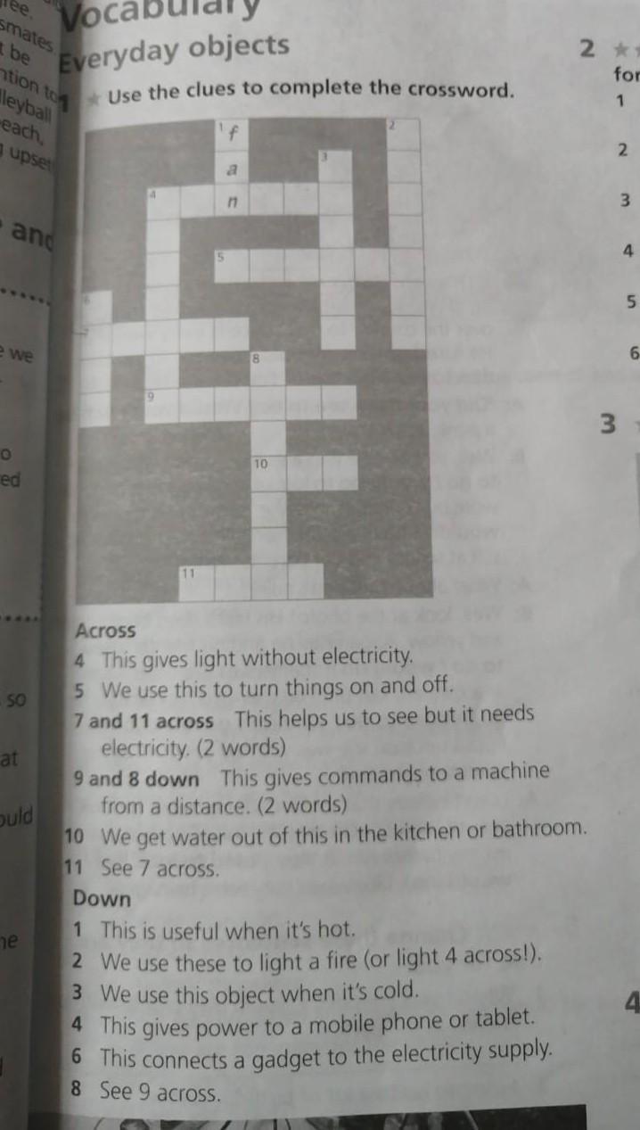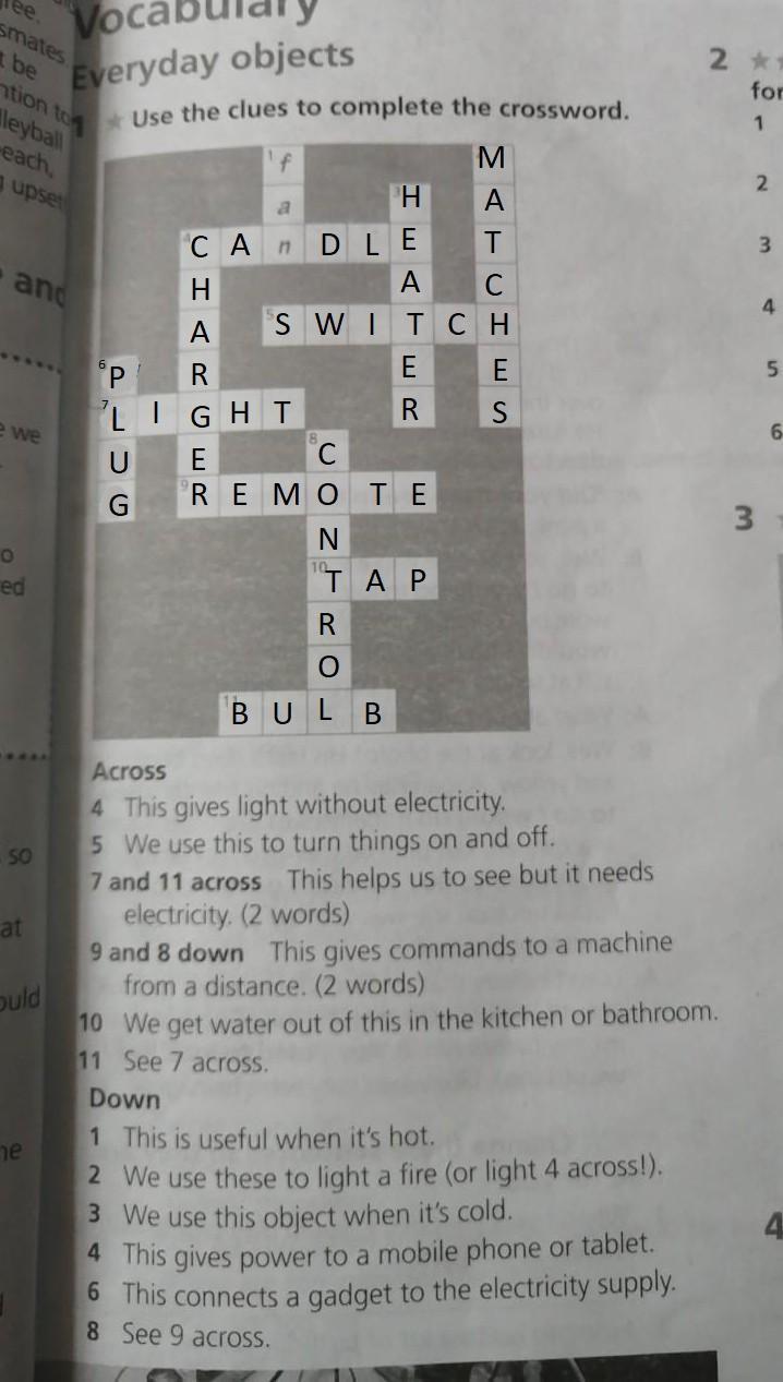 7. and 11 across This helps us to see but it needs electricity. (2 words)