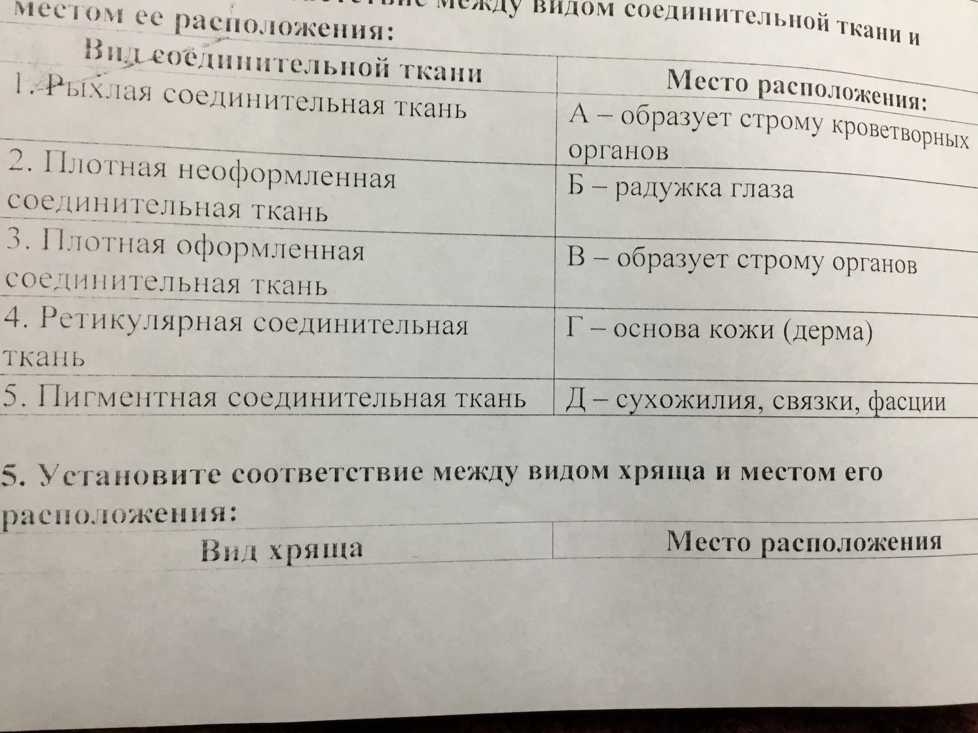 ХЕЛП СРЧ Установите соответствие между видом и Установите соответствие между видом соединительной ткани местам ее расположения