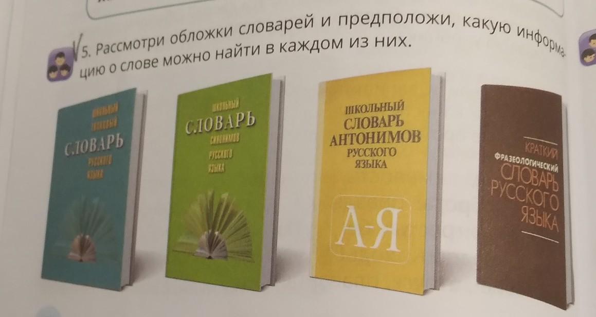 ѕ Рассмотри обложки словарей и предположи, какую информа- дослове можно найти в каждом из НИХ, ШКОЛЬНЫЙ СЛОВАРЬ АНТОНИМОВ РУССКОГО ISKA СЛОВАРЬ 3 СОВИРА КРАТКИЙ с?зиологическия СЛОВАРЬ РУССКОГО АЯ ЯЗЫКА 52