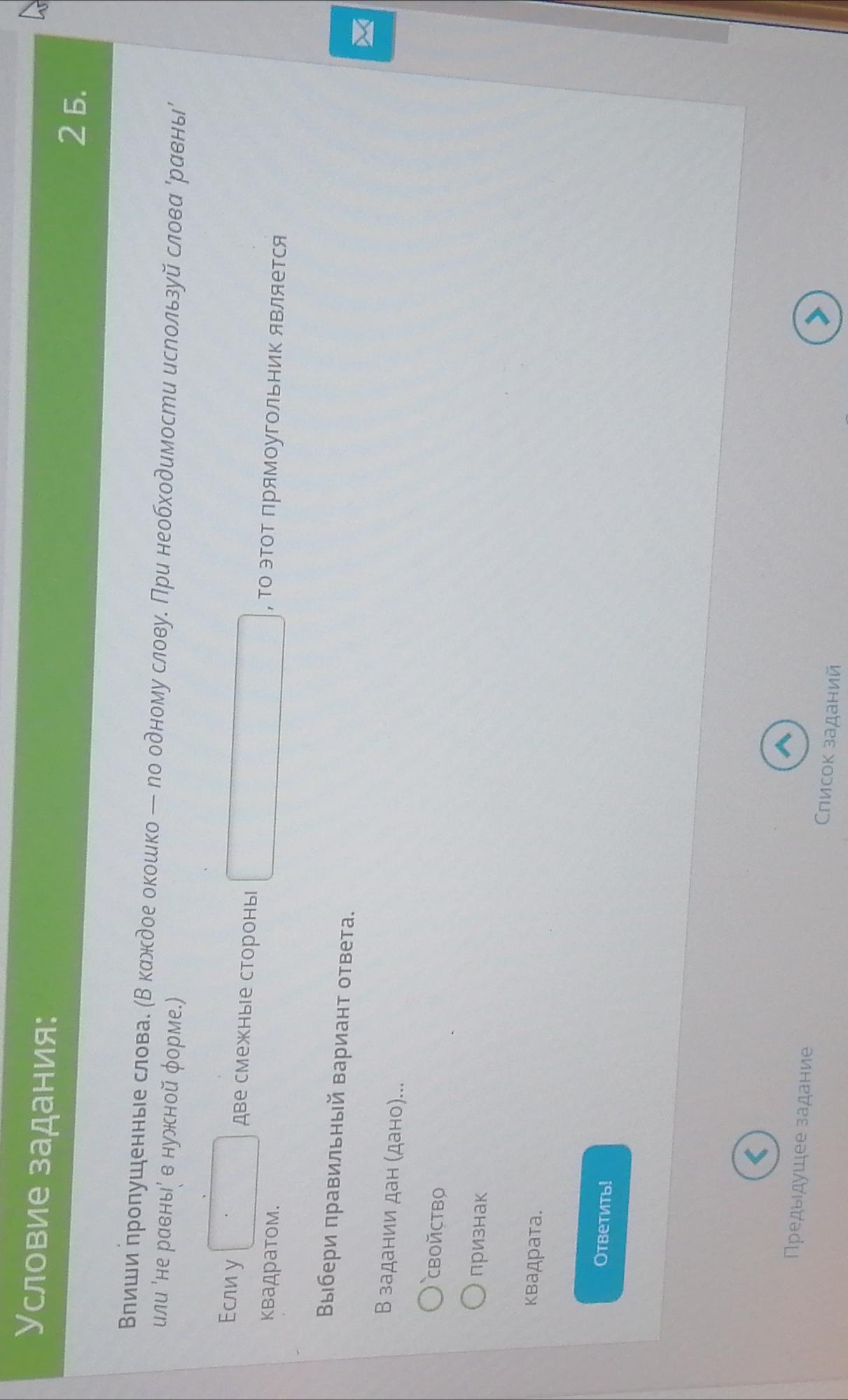 Если у Свойство две смежные стороны признак квадрата то этот прямоугольник является квадратом