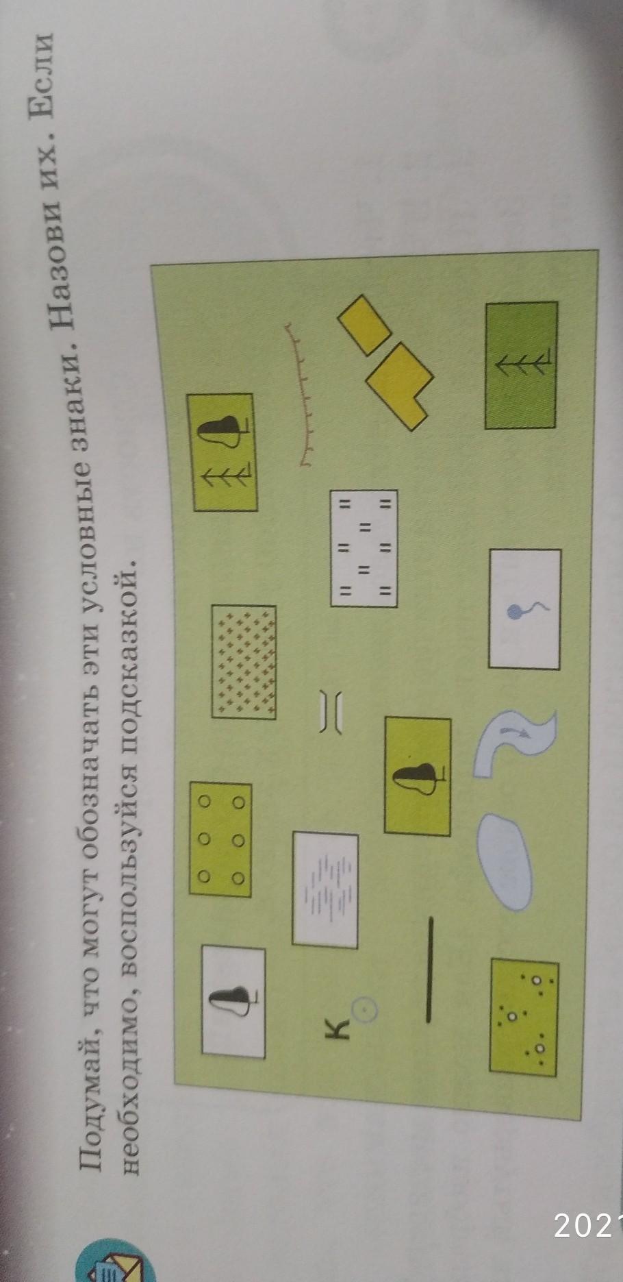 Виш, Подумай, что могут обозначать эти условные знаки. Назови их. Если необходимо, воспользуйся подсказкой. K А.