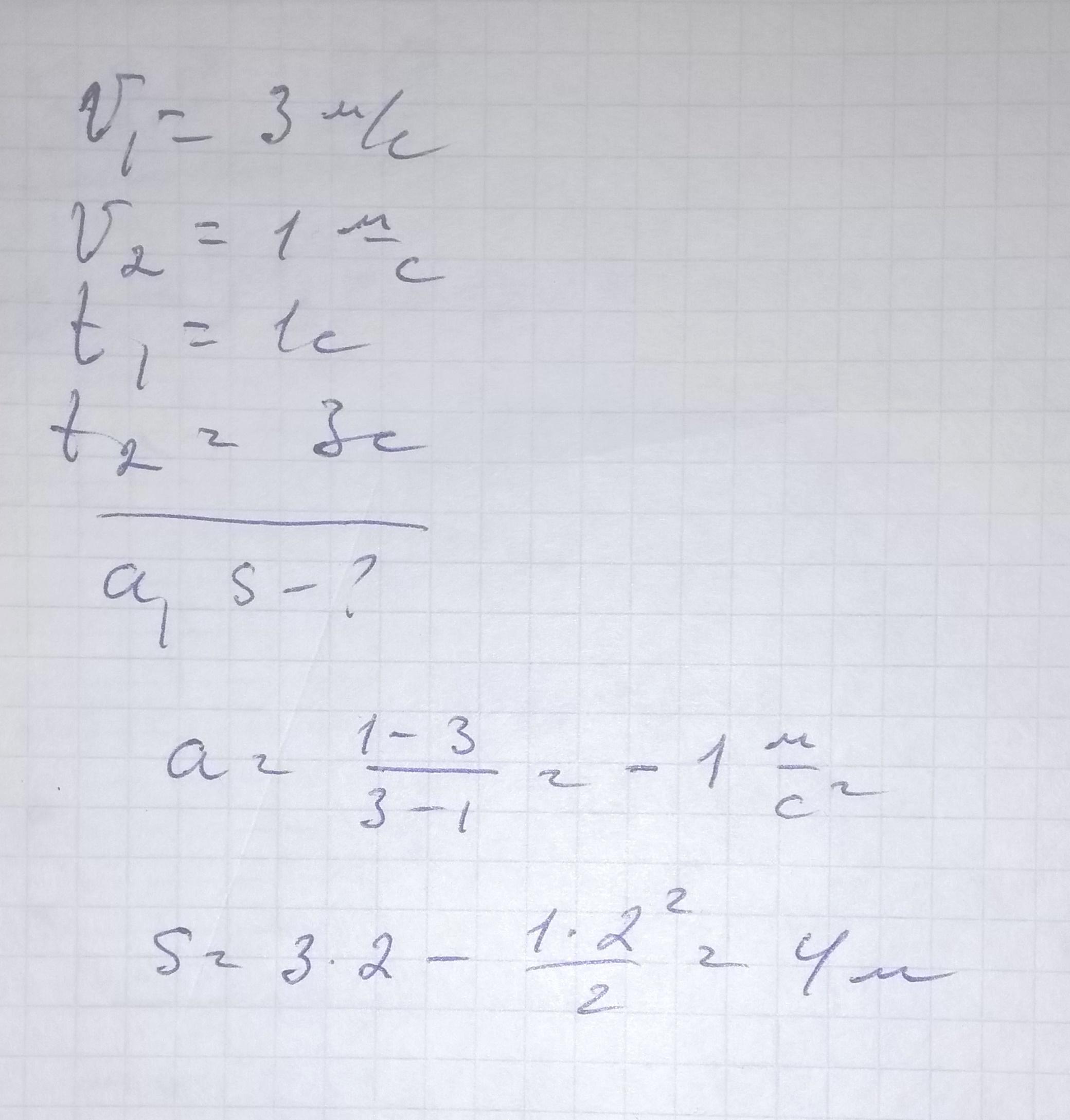 По графику зависимости скорости от времени найди ускорение и пройденный путь за отрезок времени от 0,3 до 3,7 с.