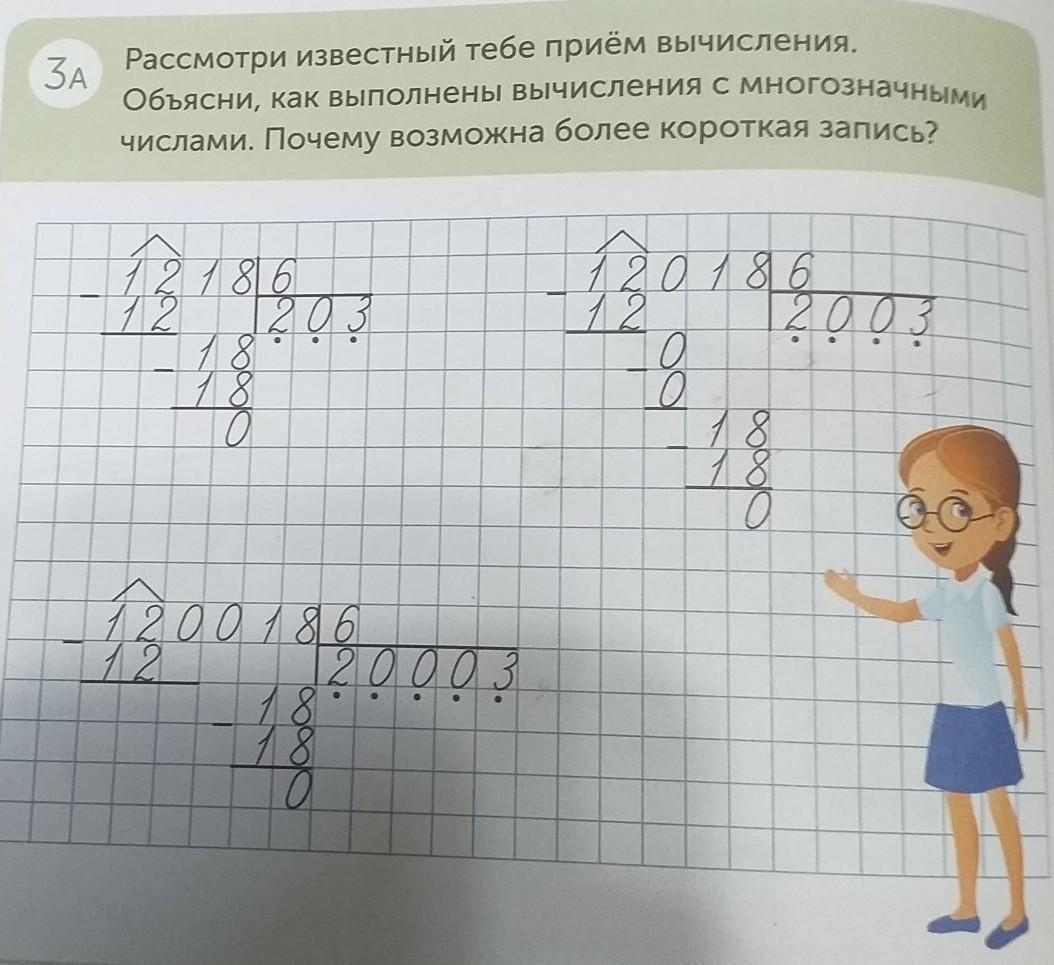 ЗА Рассмотри известный тебе приём вычисления. Объясни, как выполнены вычисления с многозначными числами. Почему возможна более короткая ззапись?