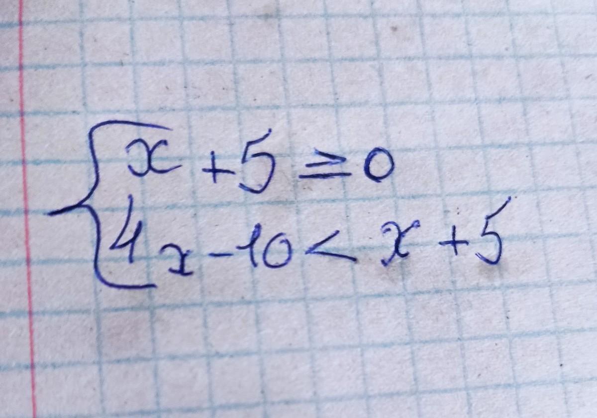 Так как у нас система, то есть выполняются оба условия, то заметим, что нижняя граница нестрогая, то есть -5 входит в решение, а верхняя строгая, то есть 5 не входит в решение, таким образом