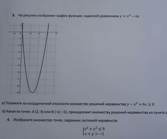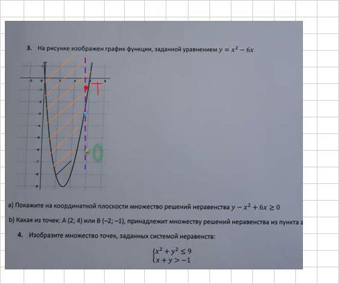 а) Множество решений неравенства у - х² +6х ≥ 0 находится внутри параболы