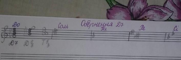 D7 строиться на 5 ступени лада и имеет состав б3+м3+м3. Например, D7 в Соль мажоре - ре фа# ля до (ре фа# - б3, фа# ля - м3, ля до - м3). Чтобы построить обращение интервала, нудно просто перенести его основание на октаву вверх. Например, в аккорде ре фа# ля до мы переносим ре на октаву вверх и получаем аккорд фа# ля до ре. Этот аккорд будет называться первым обращением D7 - D65. Второе обращение (ля до ре фа#) называется D43, третье (до ре фа# ля) - D2.