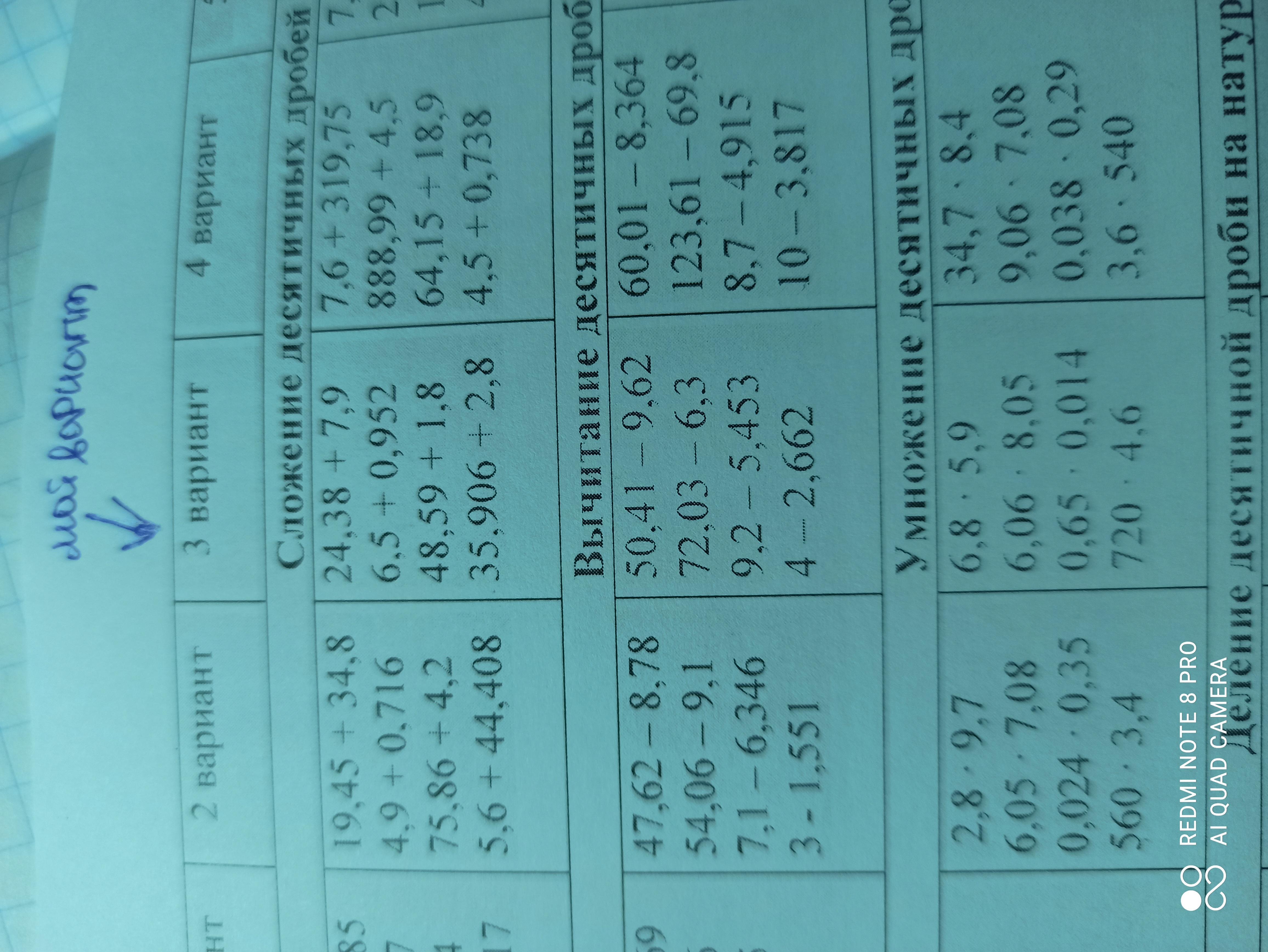 вычитание: