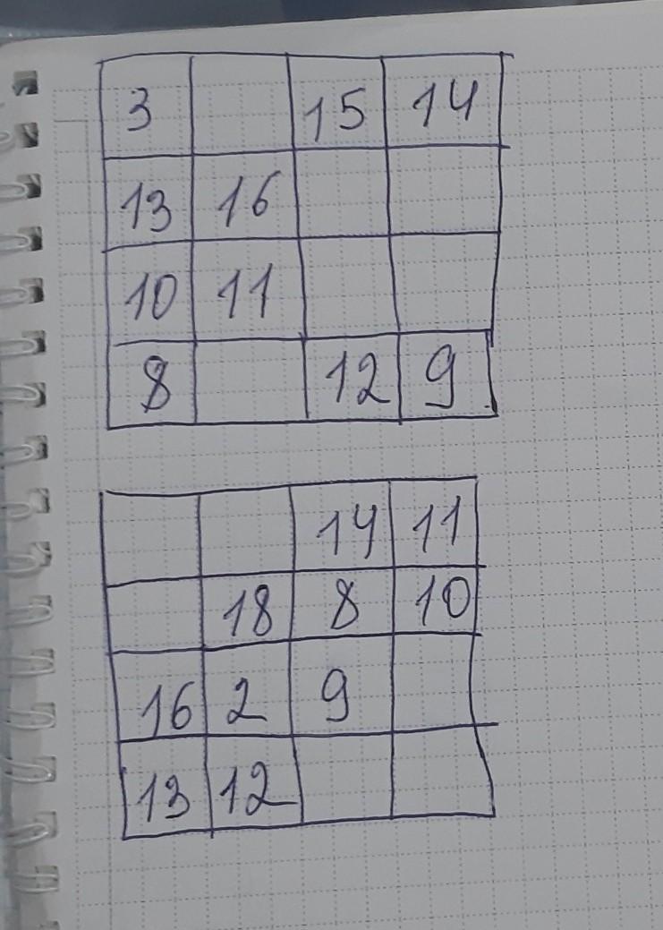 магический квадрат 4 порядка. сумма чисел каждому ряду 34 помогите пожалуйста плизз
