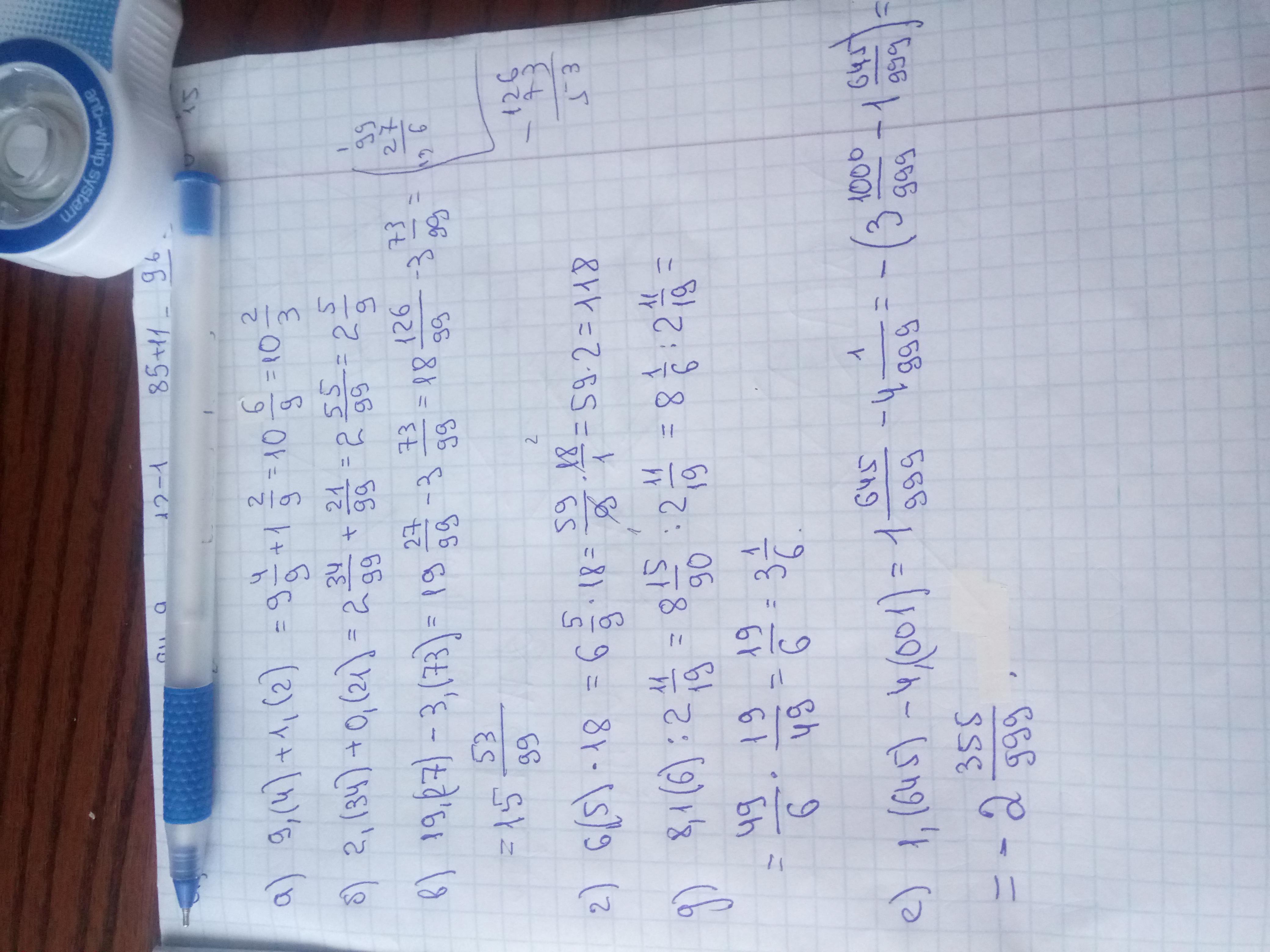 4. Обратите периодические десятичные дроби в обыкновенные и выполните вычисления: a) 9.(4) + 1,(2); б) 2,(34) + 0,(21); B) 19,(27) -3,(73); г) 6,(5)× 18; д)8,1(6): 2 11/19; e) 1,(645) - 4,(001) ПЖ НАПИШИТЕ ООТВЕТТ