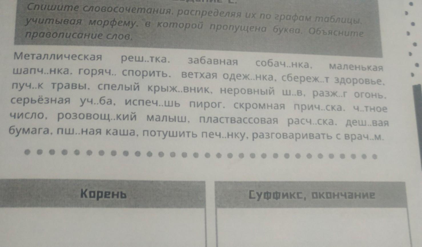 Металлическая решётка. Забавная собачонка. маленькая шапчонка. Горячо спорить. Ветхая одежонка. сбережёт здоровье. пучок травы. спелый крыжовник. неровный шов. разжёг огонь. серьёзная учёба. испечёшь пирог. скромная причёска. чётное число. розовощёкий малыш. пластмассовая расчёска. дешёвая бумага. пшённая каша. потушить печёнку. разговаривать с врачом.