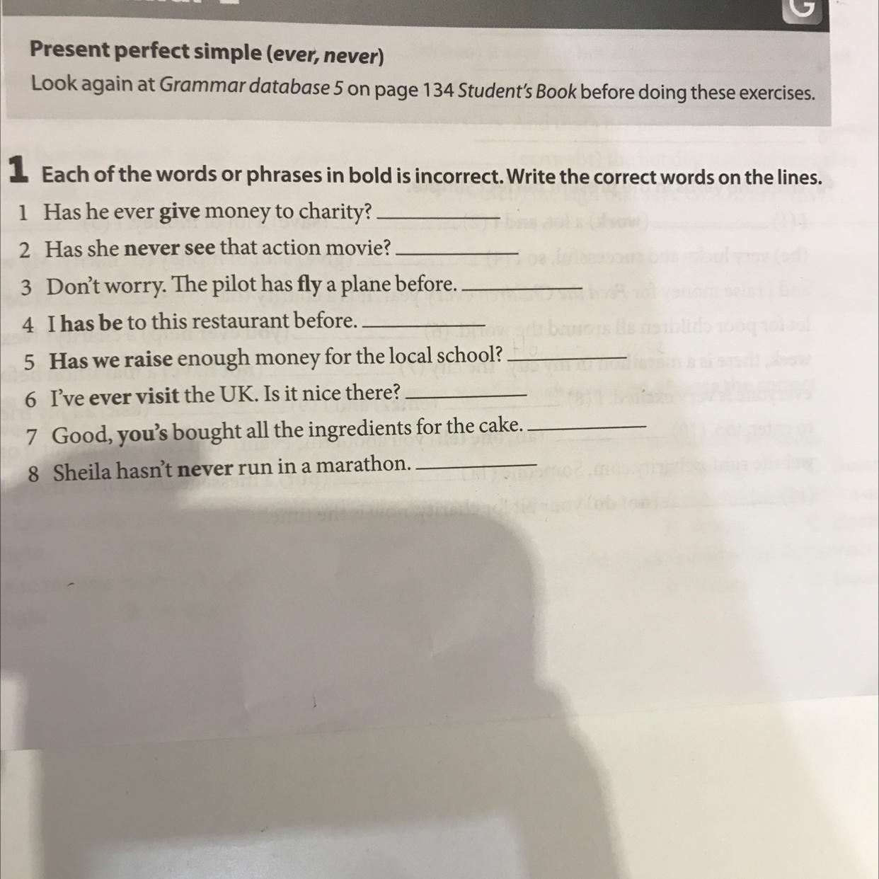 1 Each of the words or phrases in bold is incorrect. Write the correct words on the lines.