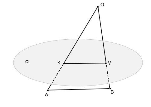 Плоскость альфа пересекает отрезки ОА и ОВ а точках К и М ,так что прямая АВ параллельна плоскости альфа.