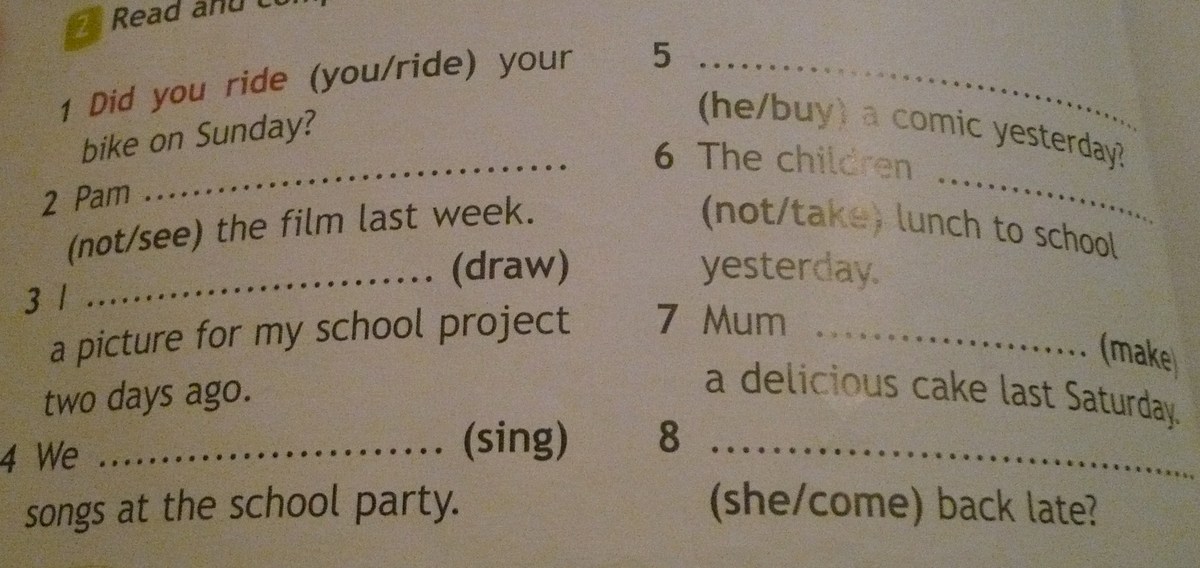 Ты не сфоткала задание, там должно быть написано, что надо в прошедшем времени я надеюсь