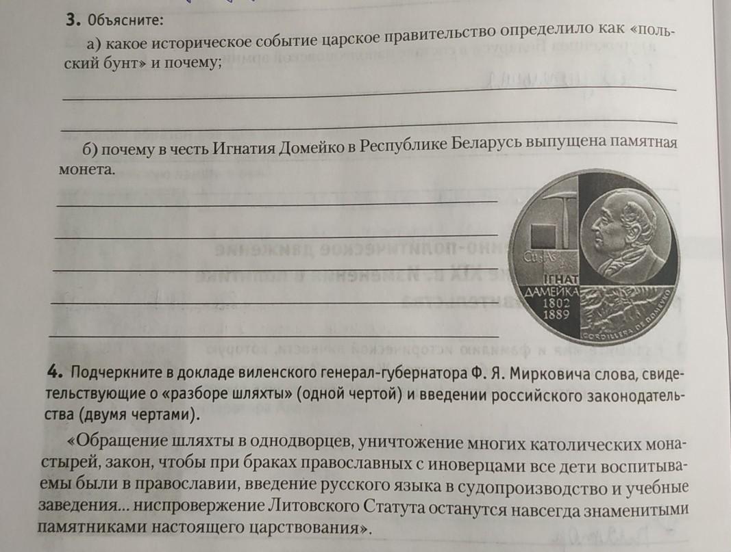 3. Объясните: а) какое историческое событие царское правительство определило как «ПОЛЬ- ский бунт» и почему; б) почему в честь Игнатия Домейко в Республике Беларусь выпущена памятная Монета. ІГНАТ ДАМЕЙКА 1802 1889 ΗΛΕΟυ Cocoricare