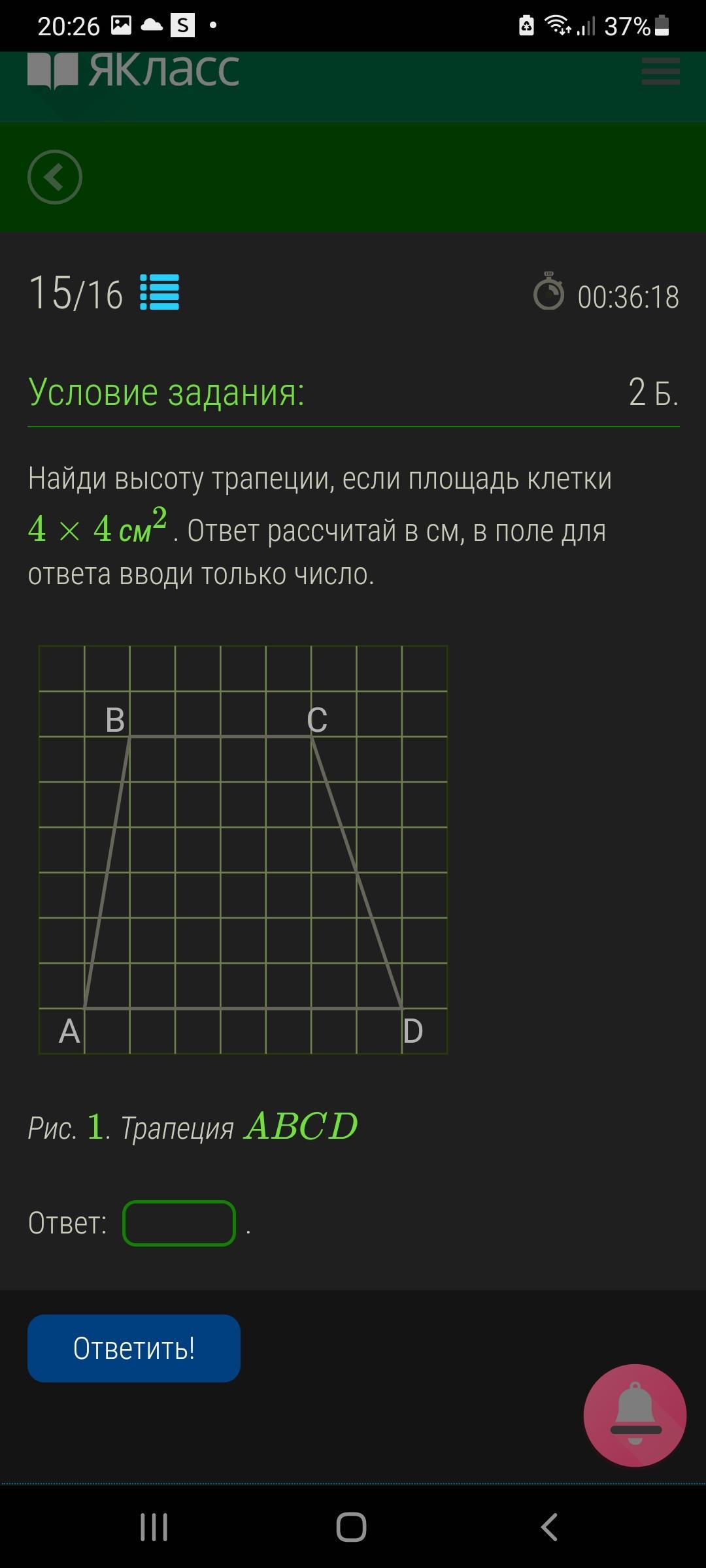 Объяснение:S клетки - 4 см2=> длинна стороны клетки - 2. Высота трапеции - 6 клеток => выоста трапеции - 12 см