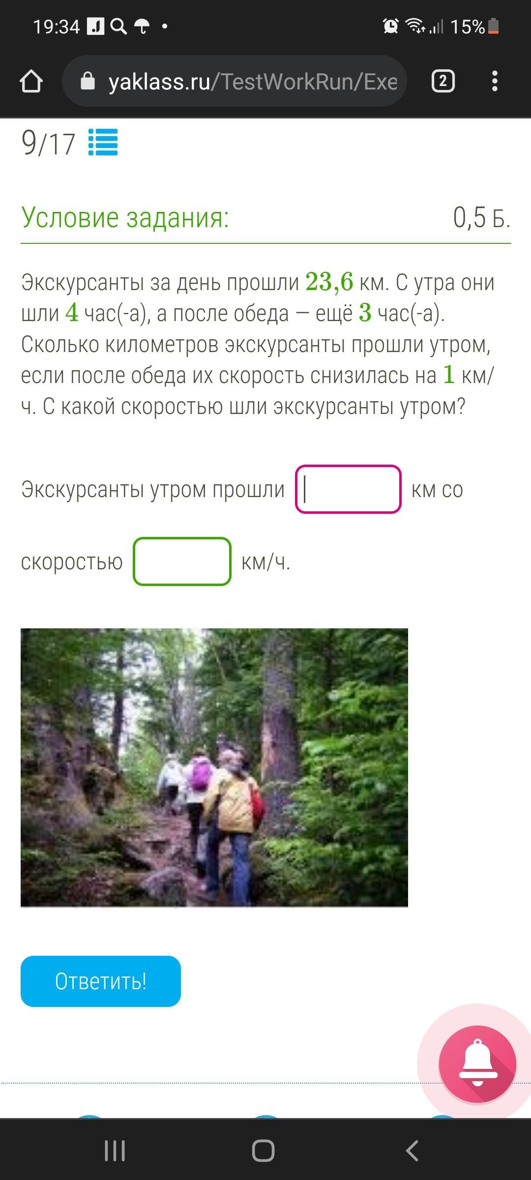 2) 2,3+1=3,3 (км/ч) - скорость туристов с утра.