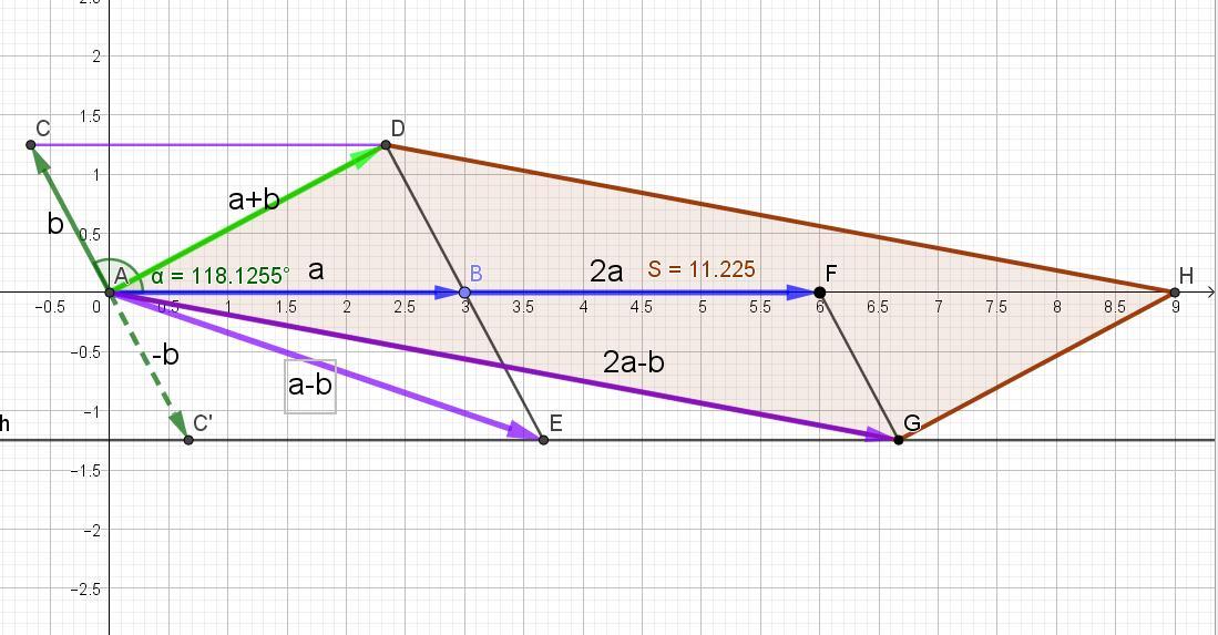 Отсюда находим угол FAG наклона вектора |2a-b| к оси Ох.