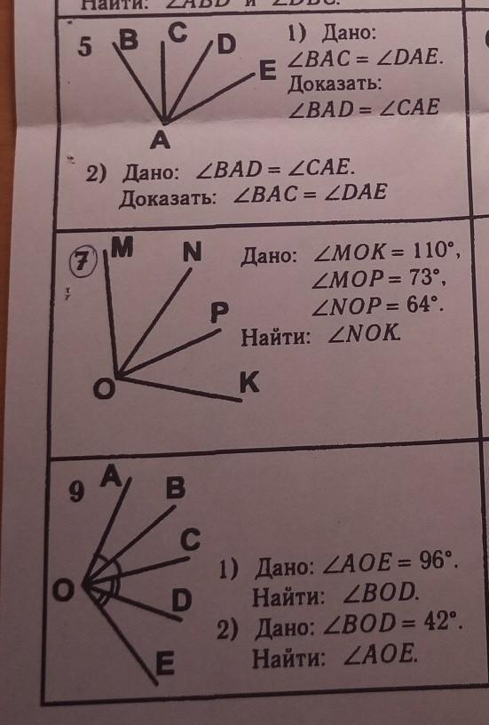 9. 1) легко заметить, что исходный угол АОЕ состоит из двух пар равных углов. ∠АОВ=∠ВОС, а ∠СОD=∠DOE,