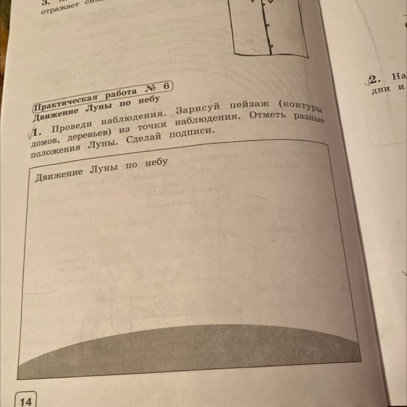 Проведи наблюдения. Зарисуй пейзаж (контуры домов, деревья) из точки наблюдения. Отметь разные положения Луны. Сделай подписи.
