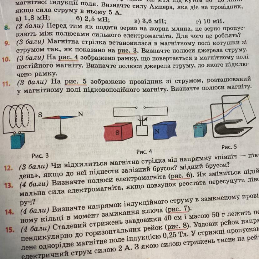 11. (3 бали) На рис. 5 зображено провідник зі струмом, розташований