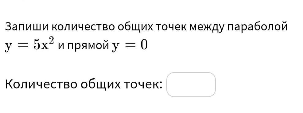 Подставим в уравнение параболы вместо y 0и получим 0=5x^2, х^2=0, х=0, следовательно одна точка пересечение