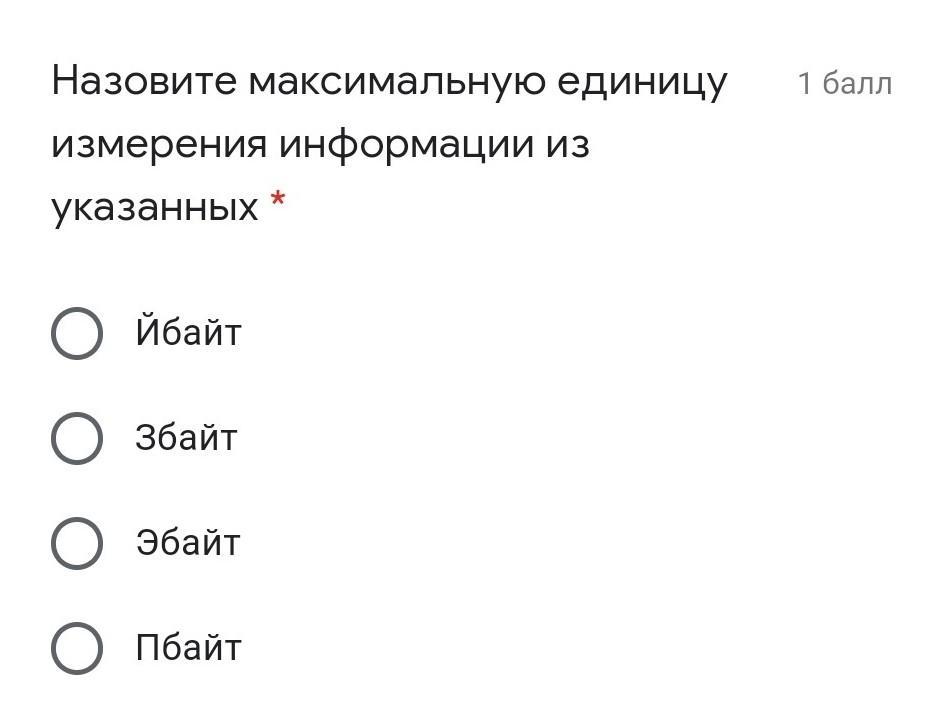 Йоттабайт ( Ибайт ) 2^80 = 1024 х 1024 х 1024 х 1024 х 1024 х 1024 х 1024 х 1024 байт.