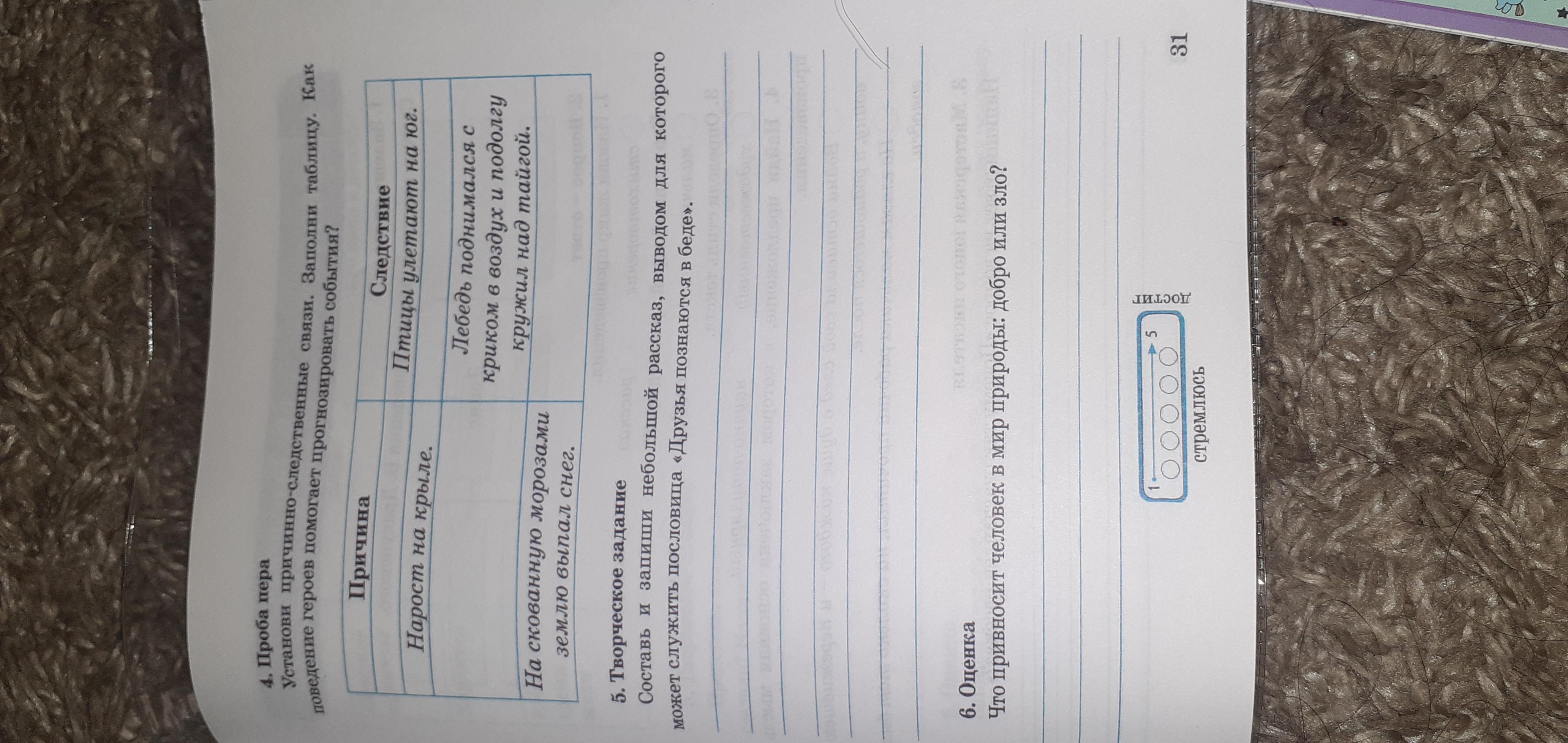 в первом причина наступают холода второе следствие перебитая кость третья причина лебедь хотел улететь в далекий путь четвертое следствие лебеди легли под крутой берег реки