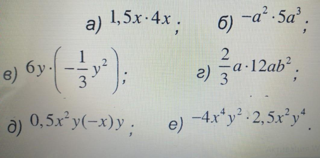a)1,5x*4x=6x² b) -a²*5a³=-5a^5