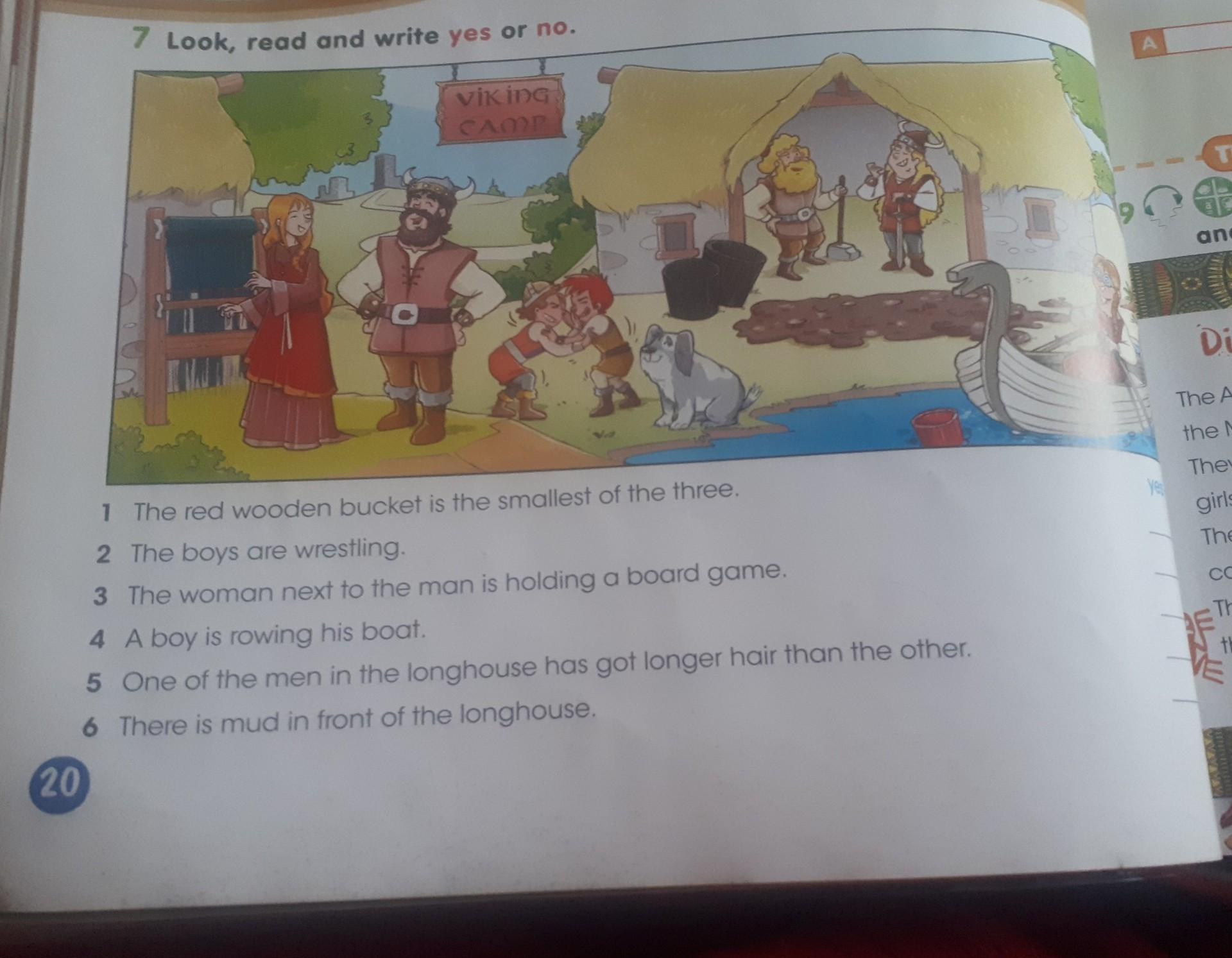 5 У одного из мужчин в длинном доме волосы длиннее, чем у другого.