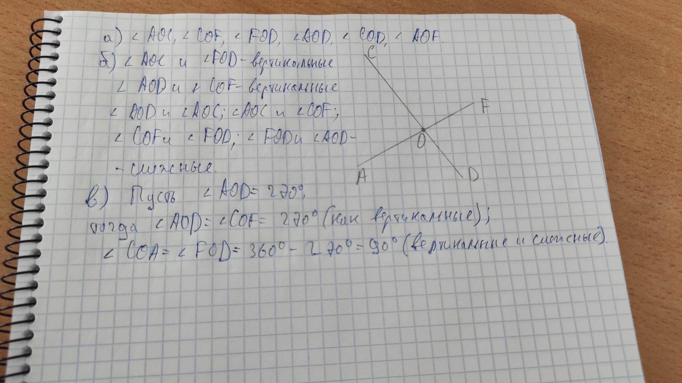 c)найдите значения всех образованных углов, если один них ранен 270 градусов