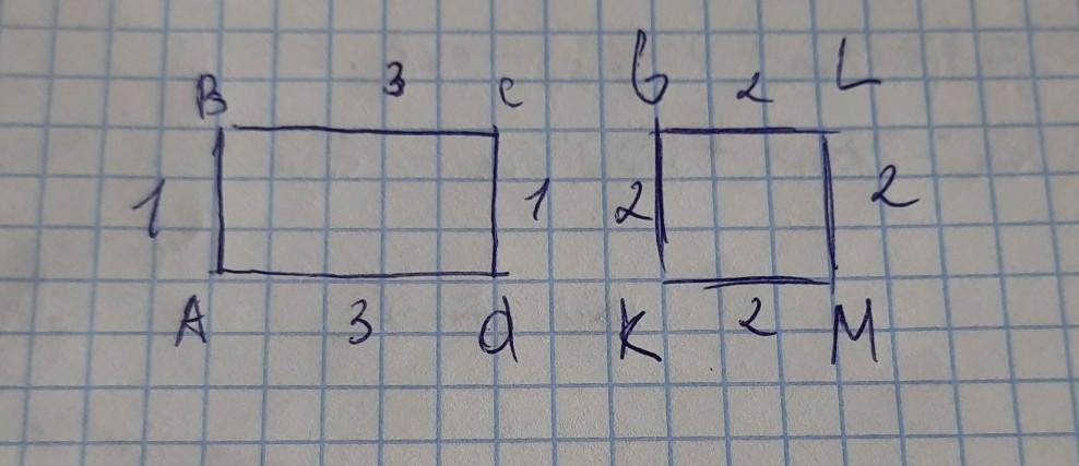 Площадь первого прямоугольника ABCD меньше площади второго прямоугольника GLMK на: 4-3 = 1 см.