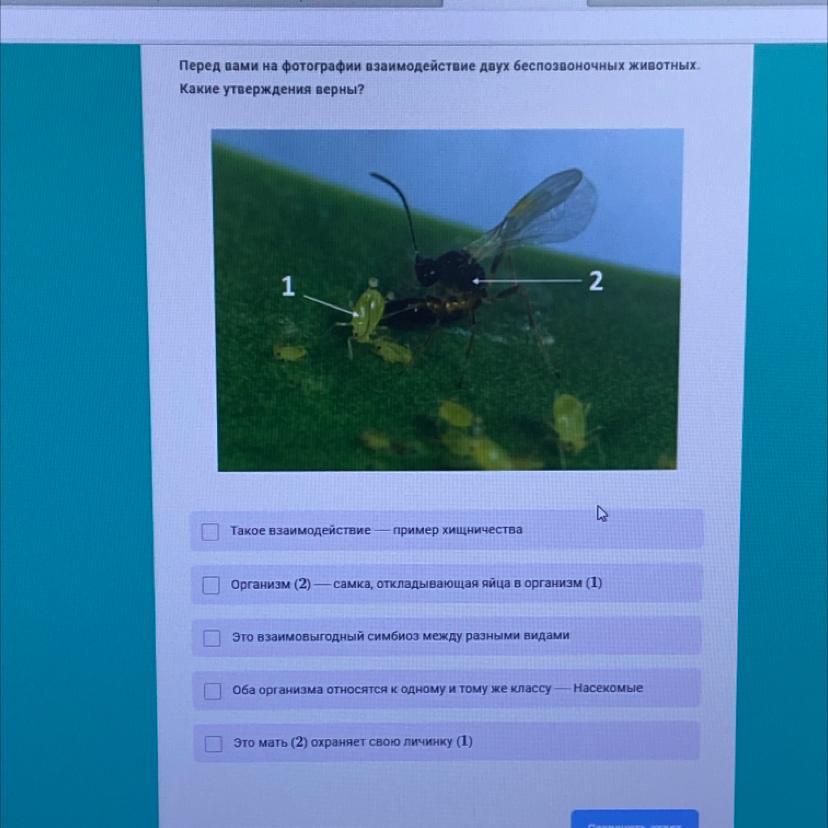 По картинке видно, что это насекомые и что 2 откладывает яйца в 1