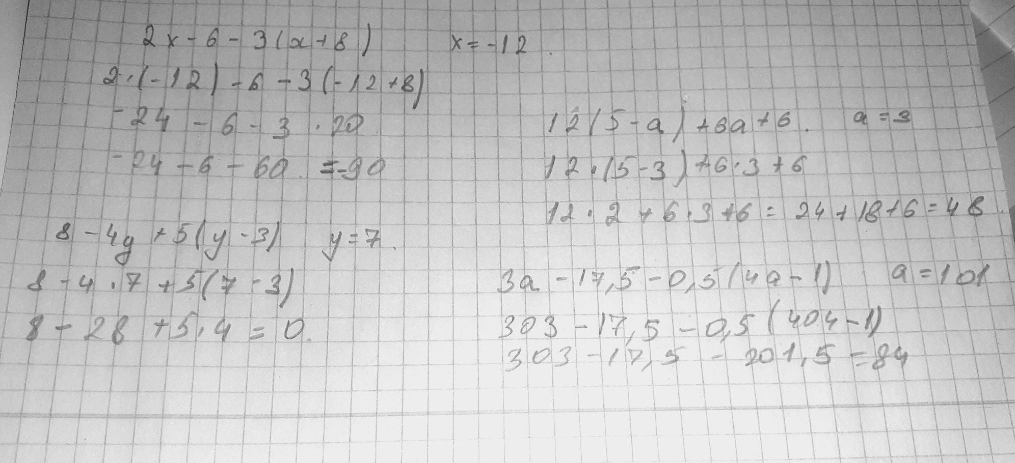 упростите выражение и найдите его значение : 2x-6-3(x+8) при x= -12